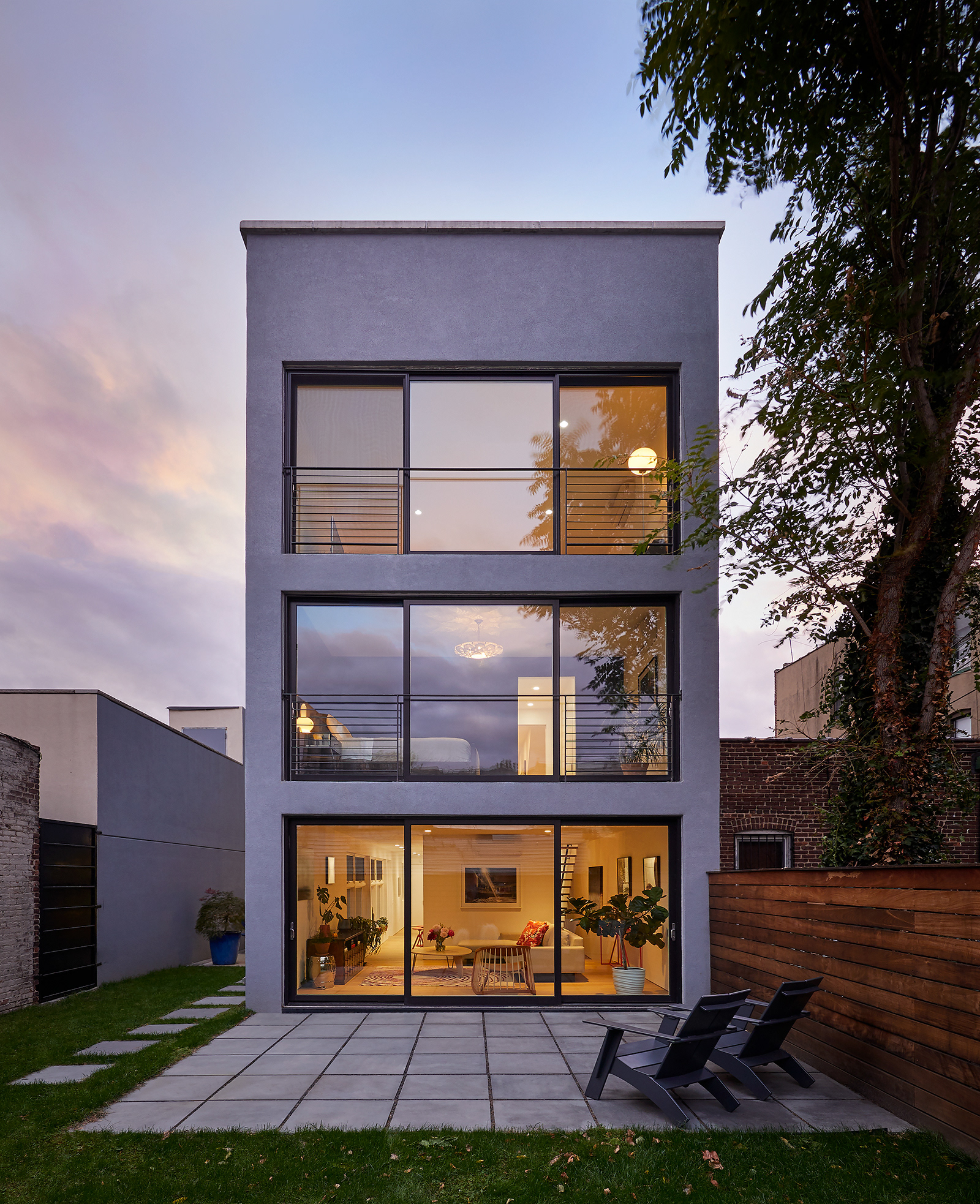 A new 3,000 sf two family residence in Queens, the H2House pairs elegant simplicity with a strong indoor-outdoor connection. Photos by Tim Williams