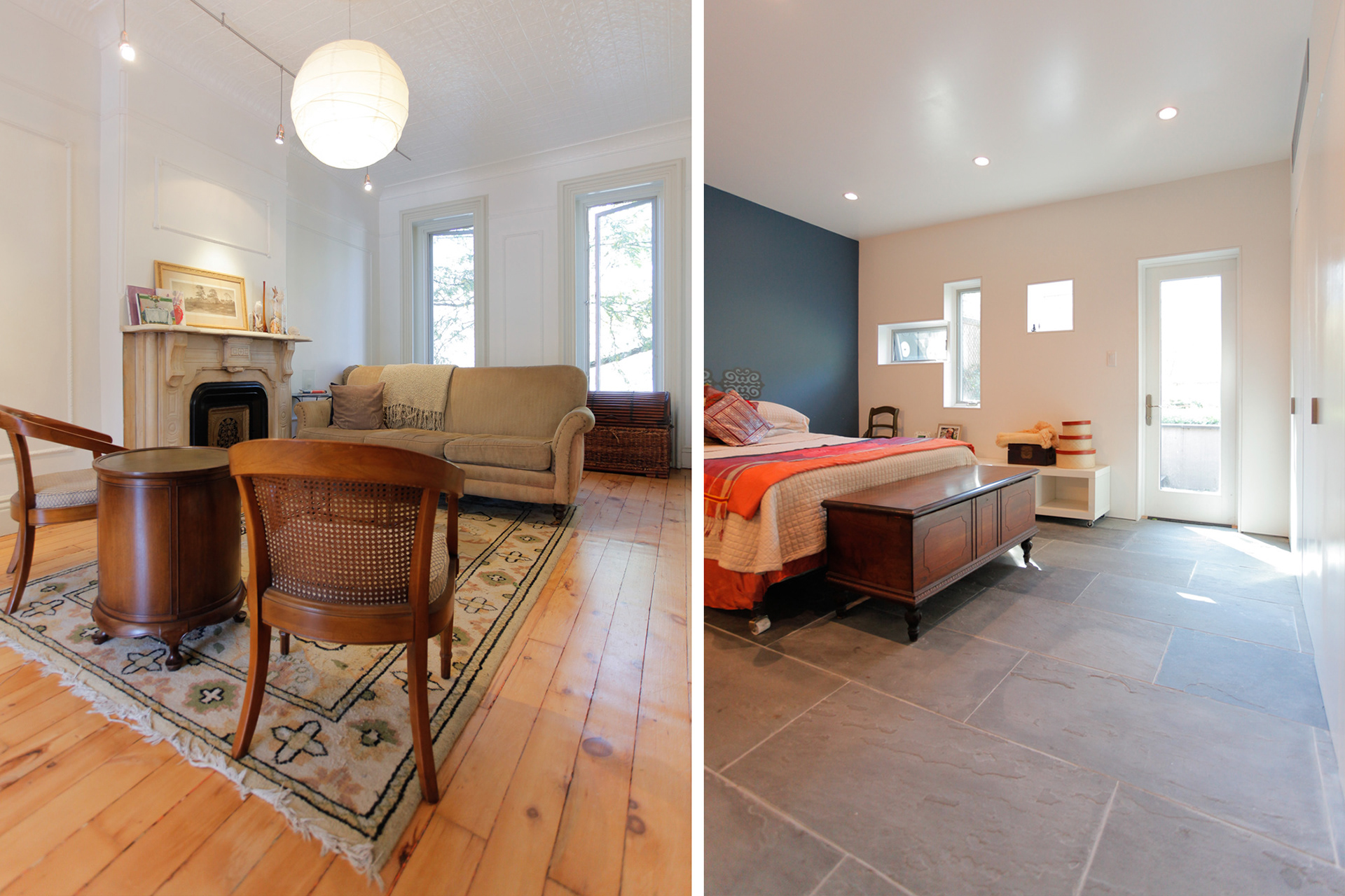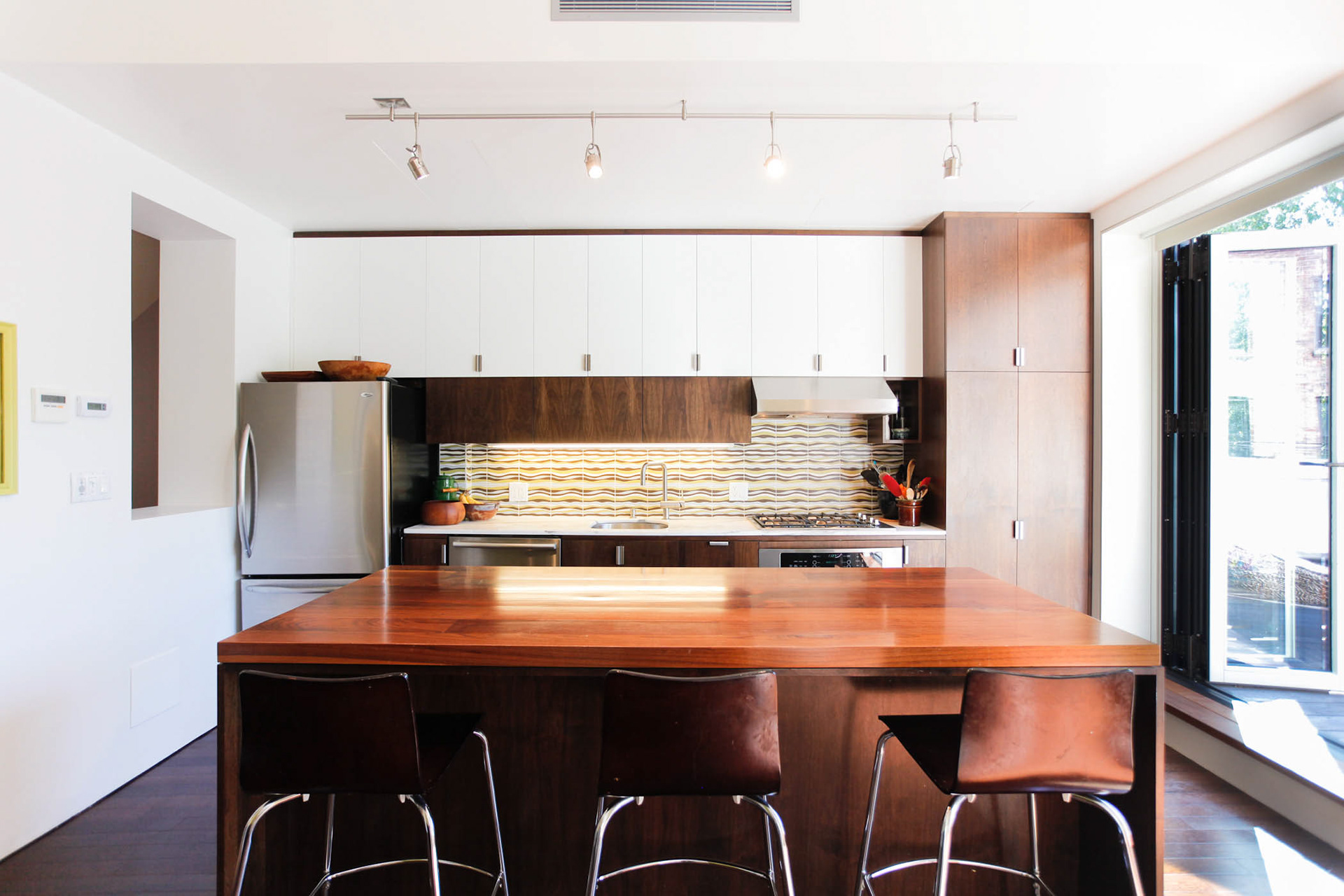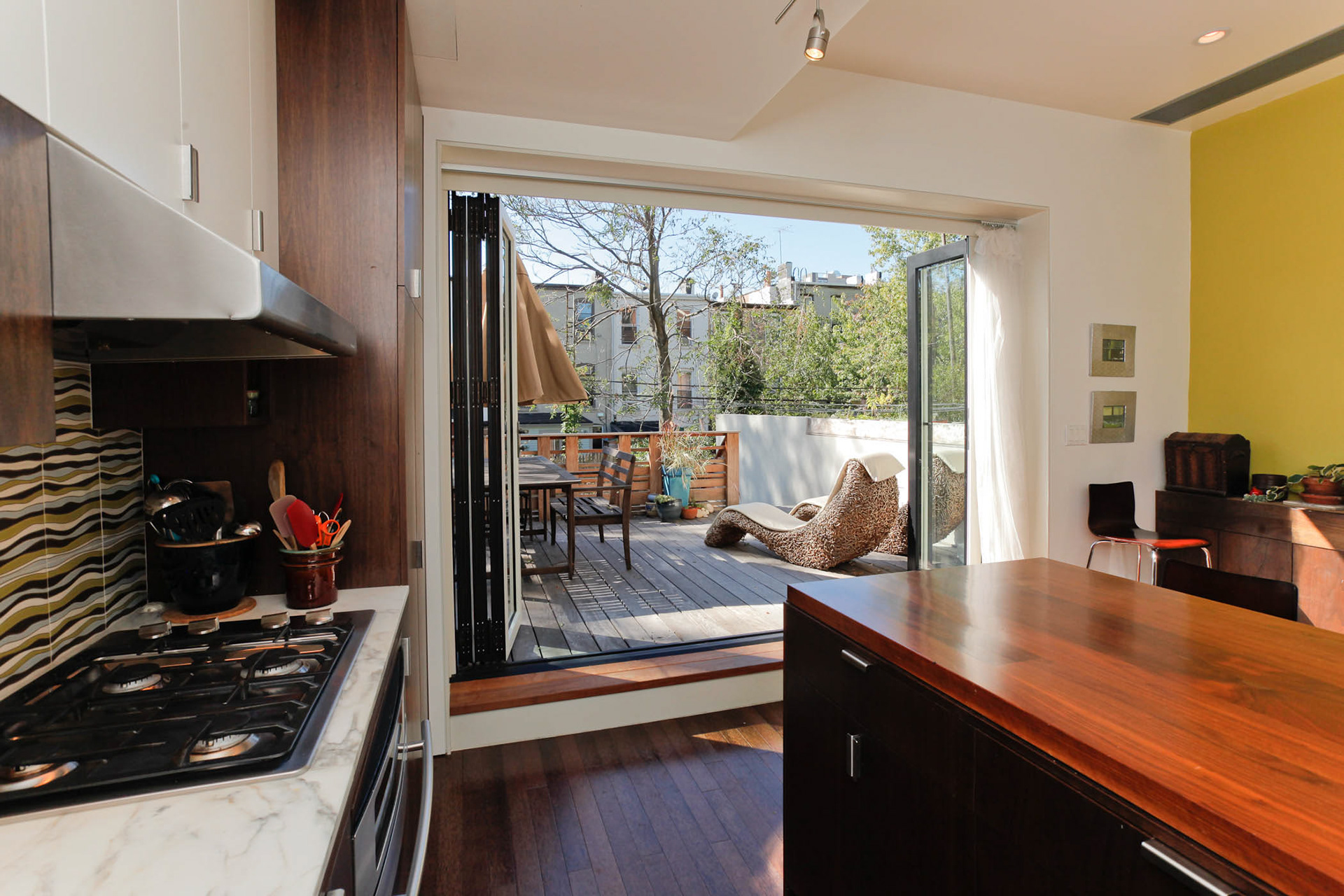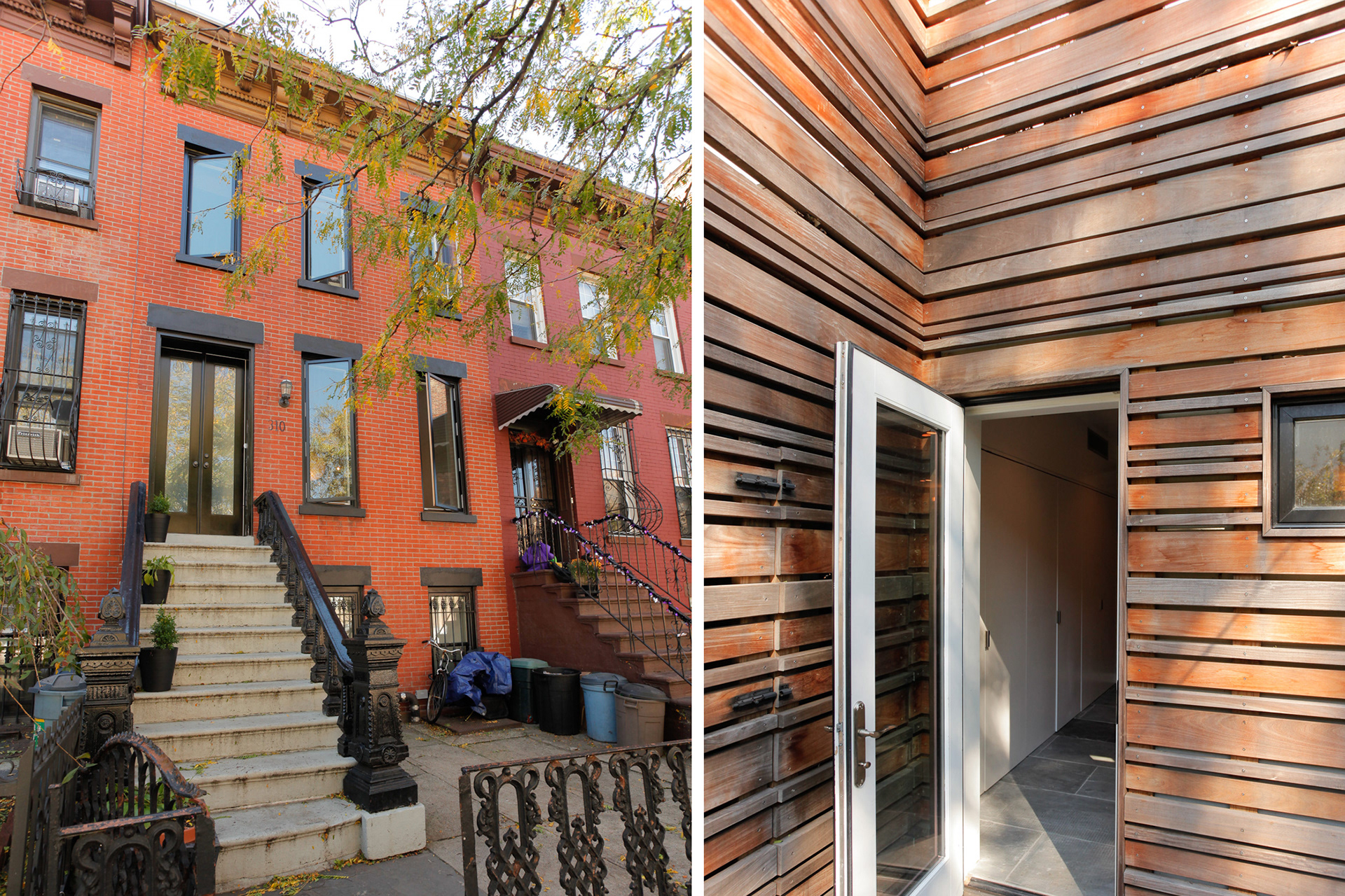 A typical Park Slope row house, this 2,500sf gut renovation combines its original historic detailing with modern insertions, including a folding exterior glass wall, 3Form plexiglass and steel staircase, and 5kW solar array. A new rear addition, clad in salvaged wood slats, adds a master bedroom at the garden level.